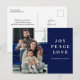 Minimal Blue Joy Peace Love Christmas Family Name Holiday Postcard