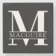 A unique yet minimal monogram black stone coaster with your unique monogram letter and name.