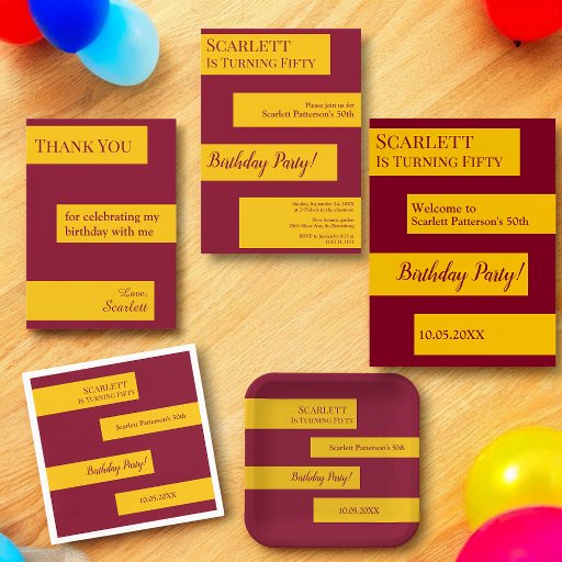 This elegant burgundy and gold birthday Thank You Card is perfect for a modern Birthday. the simple design features elegant burgundy calligraphy on gold stripes on a burgundy background.
