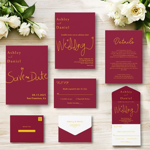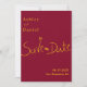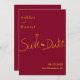 This elegant burgundy and gold wedding save the date is perfect for a modern wedding. the simple design features elegant gold calligraphy on a burgundy background.
