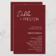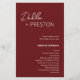Modern burgundy wedding program featuring a simple and minimal design with the bride's name in an elegant script and the groom's name in a contemporary sans serif font. Below in the lower right corner are your event details and order of ceremony in a minimalist layout. The back has your wedding party and thank you message.