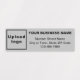 Minimal information are often easy to understand and remember. Grey rectangle adhesive label that you can customise by uploading your business logo and typing minimal details of your business. Contents are your business logo, business name, address and phone number. Customise it and use it as a packaging accessory to promote your brand or to advertise your business. Customisable label that you can use to build brand name awareness. Please check the appearance after uploading logo and typing text. If the appearance is pleasing to you, you can place your order now. If you need to resize or reposition the logo and text, please adjust in the design tool. You can also change the background colour, font colour and font style in the design tool.