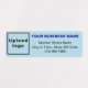Minimal information are often easy to understand and remember. Light blue rectangle adhesive label that you can customize by uploading your business logo and typing minimal details of your business. Contents are your business logo, business name, address and phone number. Customize it and use it as a packaging accessory to promote your brand or to advertise your business. Customizable label that you can use to build brand name awareness. Please check the appearance after uploading logo and typing text. If the appearance is pleasing to you, you can place your order now. If you need to resize or reposition the logo and text, please adjust in the design tool. You can also change the background color, font color and font style in the design tool.