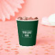 Minimal business logo simple typography soft white and green branded coffee paper cups. Customise with your company's logo and add your own personalised text. Text font and colour can easily be changed in the design editor to match your branding colours.