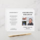 Clean and minimalist funeral program in dark grey and white, with elegant fonts. Add three photos of your loved one along with their name and years living. On the back you can write the obituary and program. Fold it yourself for a practical program!