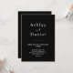 This elegant black and white wedding invitation is perfect for a modern wedding. the simple design features elegant white calligraphy on a black background.