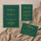 This elegant green and gold wedding invitation is perfect for a modern wedding. the simple design features elegant gold calligraphy on a green background.