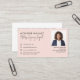 Professional Elegant and Modern Minimalist Photo Business Card in poudre pink that allows you to include a square or portrait photo or picture on the right side.
