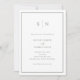 These elegant, modern wedding invitations feature a simple white minimalist text design, with sage green text and a classic frame at the border. Add your initials or monogram to make them completely your own.