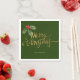 Minimal Merry Christmas Holly Branch Holiday napkin design features a simple Christmas Holly branch with faux gold foil typography script "Merry Christmas" finished with your custom family name set on a festive green background. These xmas napkins are the perfect addition to your Christmas table decor.