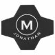 A minimalist monogram design with classic block typography initial with your name below on a simple black background.