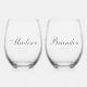 Minimal Classic Script Couple Names Engagement Stemless Wine Glass