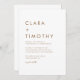 This modern, minimal wedding invitation exudes contemporary elegance with its sleek black and white theme. The simplicity of the design creates a timeless look that is perfect for couples seeking a minimal, polished touch for their special day. The monochromatic colour scheme adds a sense of chic sophistication, while the clean lines and minimalist details embody a classic aesthetic. This invitation is ideal for couples who would appreciate a refined, contemporary style that will set the tone for a memorable and stylish wedding celebration!