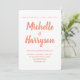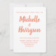 The minimalist wedding invitations combine elegant calligraphy with a pink salmon and white colour scheme. Personalise the wedding invites with your wedding details.