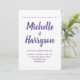 The minimalist wedding invitations combine elegant calligraphy with a purple and white colour scheme. Personalise the wedding invites with your wedding details.