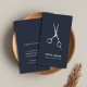 Minimal Dark Blue Faux Metal Scissors hair Business Card