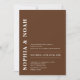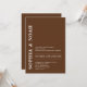 This invitation features a chic dark brown background with a minimalistic design. The names of the couple are highlighted in bold, elegant typography, adding a touch of modern elegance to the invitation.