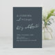 A refined minimalist engagement invitation design featuring elegant typography on a dark solid background. The clean layout and timeless lettering create a sophisticated aesthetic that feels modern, calm, and effortlessly stylish. Designed for couples who appreciate simplicity and balance, this typography-focused design delivers a polished, graceful look perfect for a contemporary engagement celebration.