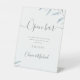 Minimal dusty blue greenery script rustic Open Bar Pedestal Sign