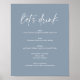 Minimal Dusty Blue Modern Wedding Drink Bar Menu Sign Poster. The text 'let's drink' is not editable. Can be used for weddings, bridal showers, baby showers, etc.