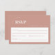 A modern, dusty rose wedding RSVP card, designed with modern typography, arched lettering, and a spot for your guests' names and dietary restrictions.
