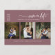 This save the date postcard features an elegant modern minimalist style of a three (tri) photo collage with a modern calligraphy of the wording "Save the Date" and elegant Serif fonts for a clean minimalist and modern look on a dusty purple background, which is a beautiful way to inform about your upcoming wedding. Announce to your family and friends you are getting married with this save the date postcard and add a personal touch with beautiful pictures of you and your soon-to-be better half. The simplicity of this design adds a touch of elegance to your wedding. It works well with many wedding themes and definitely a great addition to your wedding. Just customise the names and wording in a few easy steps and personalise the postcard with your photo of the happy couple and replace the QR Code with yours.