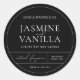 Minimalist black round product label design, featuring a professional design with elegant calligraphy script and serif fonts. This fully editable candle sticker is great to use for your jars or as a tin lid label, simple, yet timeless design that is sure to impress. Elevate your product packaging design with this modern product label.