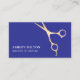 Minimal Elegant Blue Faux Gold Scissor HairStylist Business Card