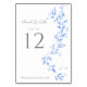 Elements: an elegant vine of in the style of vintage porcelain painting. Names appear in a modern script; other details in classic serif fonts Colours: blue, porcelain blue, delft blue, french blue, grey. Themes: elegant, modern, minimalist, garden, subtle, light, airy, timeless, vintage. Collection: Minimal Elegant Porcelain Floral Chinoiserie Wedding Collection Product Type: Table Card
