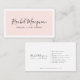 This minimal and elegant business card is perfect for many professional women. It features a black handwritten signature script font, a blush pink background, and a thick white border. It's modern, chic, simple, and stylish; the perfect design to advertise your business.