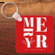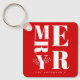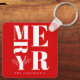 Minimal Elegant Bright Red White Merry Christmas Key Ring