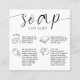 Modern Soap Care Cards with elegant script font and care icons. This minimal black and white artisan soap bar care instructions guide includes step-by-step information on how to best use and store handmade soap bar. Add your logo, thank you message and business details to make your custom soap package insert cards.