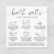 Modern Bath Salts Care Cards with elegant script font and care icons. This minimal black and white scented bath salts care instructions card includes step-by-step information on how to best use and store Himalayan, Epsom or Magnesium bath salts. Add your logo, thank you message and business details to make your custom bath soak warning guide package insert cards