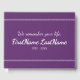 This basic funeral or memorial service guestbook features the message "We remember your life,", and the customised name and birth/death dates of the individual who has passed away. It could be used to record condolences for the relatives and friends of somebody who has recently passed on.