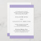 Modern purple wedding invitation with a bold digital lavender band across the top and bottom. Your names are in a classic serif font and your details are in a combination of a modern serif font and an elegant script. The back has a band along the bottom along with your monogram. This simple and minimal design with traditional wording is great for a formal wedding.