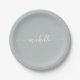 Minimal Elegant Sage Green Monogram Script Paper Plate