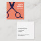 Minimal Elegant Salmon Blue Scissors Hairstylist Square Business Card