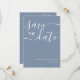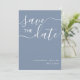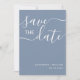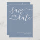 Minimal Elegant Script Dusty Blue Save The Date . Stylish minimalist save the date Photo card with simple elegant script font and photo.