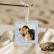 Celebrate where your forever began with this elegant and timeless wedding keepsake. This beautiful, minimal, and modern photo ornament features one cherished photo on the front and another on the back — a perfect way to capture your most unforgettable moments from your destination wedding or honeymoon. Personalise with your names, wedding or honeymoon date, location, coordinates, and a custom monogram to create a one-of-a-kind keepsake that tells your love story. Perfect for newlyweds, travel lovers, or couples celebrating their first Christmas together, this ornament is a heartfelt reminder of your most meaningful journey — the beginning of forever. Design by © Moodthology Papery.