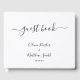 Elegant simple classy minimalist wedding guest book card template featuring a stylish chic trendy calligraphy script. Easily personalise by replacing each info. Make sure to check the preview before adding to cart. View the collection link on this page to see all of the matching items in this design.