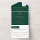 Minimal Emerald Green Gold Monogram Classy Wedding All In One Invitation