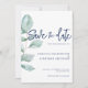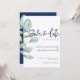 Minimal Eucalyptus Navy Blue Wedding Save The Date Invitation