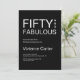 Fifty and Fabulous script minimal black and white modern 50th birthday invitation that you can personalize and send out for your fiftieth birthday party celebration. The words "Fifty and Fabulous" are set using popular font typography. The text colors can be changed using the edit menu.