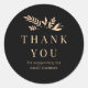 Minimal Floral Black Botanical THANK YOU Classic Round Sticker