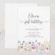 Celebrate a sweet milestone with this elegant first birthday invitation featuring delicate wildflower illustrations and modern handwritten script typography. Designed with a clean white background and soft pastel florals along the bottom, this invitation is perfect for a garden, floral, or “little wildflower” themed birthday party.