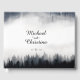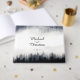 Minimal foggy spruce forest nature wedding. Landscape photograph of fog trapped in between the spruce forest making its way through the branches. Dark black and white. Pesonalizable names and everything you need you can customise.