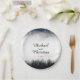 Minimal foggy spruce forest nature wedding paper plate