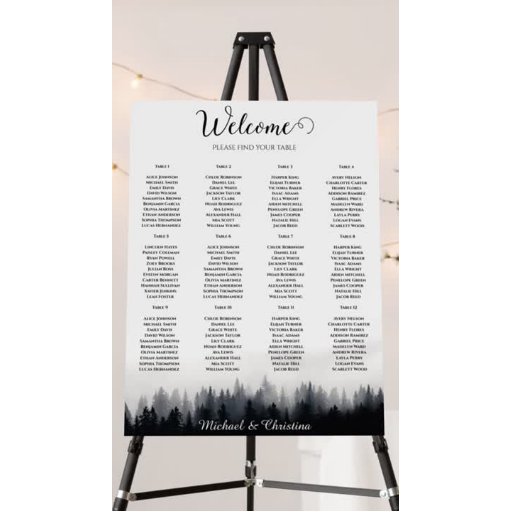 Minimal foggy spruce forest nature wedding. Landscape photograph of fog trapped in between the spruce forest making its way through the branches. Dark black and white. Pesonalizable names and everything you need you can customise.
