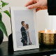 Newlyweds wedding photo keepsake plaque to always remember your special day and your love for each other. This elegant wedding day photo keepsake plaque features a simple minimal large single photo layout to display your own special wedding day photo with a thick white frame. White Heart and arrow are overlaid over the photo to personalise with your initials. Add your last name and established date below the wedding photo (note: the background colour can be changed to suit your preference.