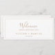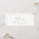 This minimal gold hanging seating chart welcome header is perfect for a simple wedding. The modern romantic design features classic gold and white typography paired with a rustic yet elegant calligraphy with vintage hand lettered style. Customisable in any colour. Keep the design simple and elegant, as is, or personalise it by adding your own graphics and artwork. The card prints on the front and back (double-sided). Please check the collection for the coordinating table number seating chart cards.